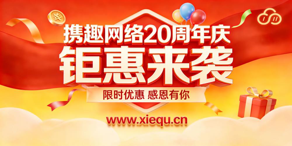 携趣网络20周年庆 五大巨促活动来袭!